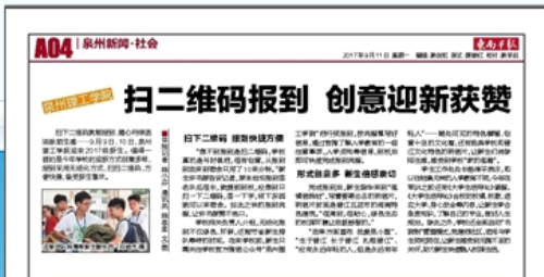 • 【晋江经济报】泉理工迎新创意足 新生扫码报到