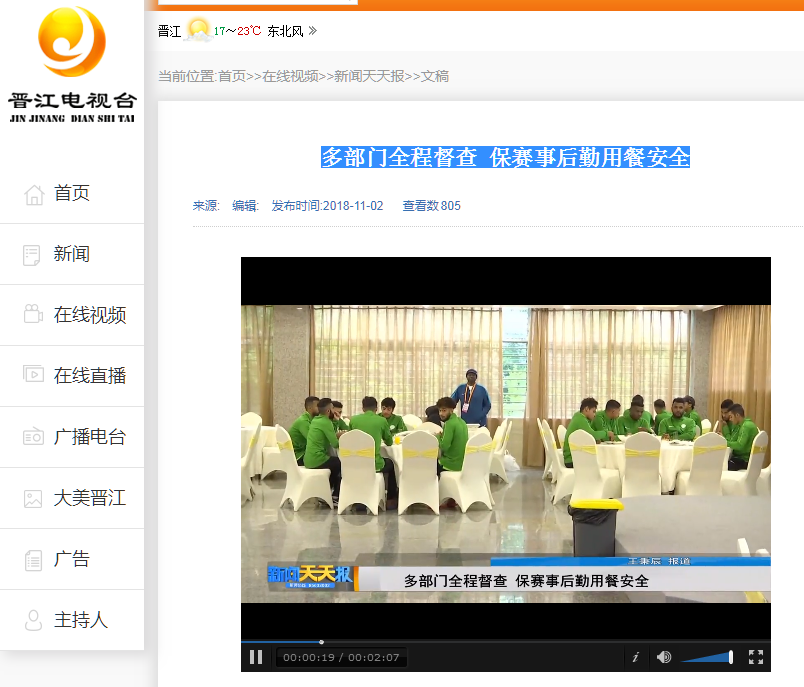 【晋江电视台】多部门全程督查 保赛事后勤用餐安全