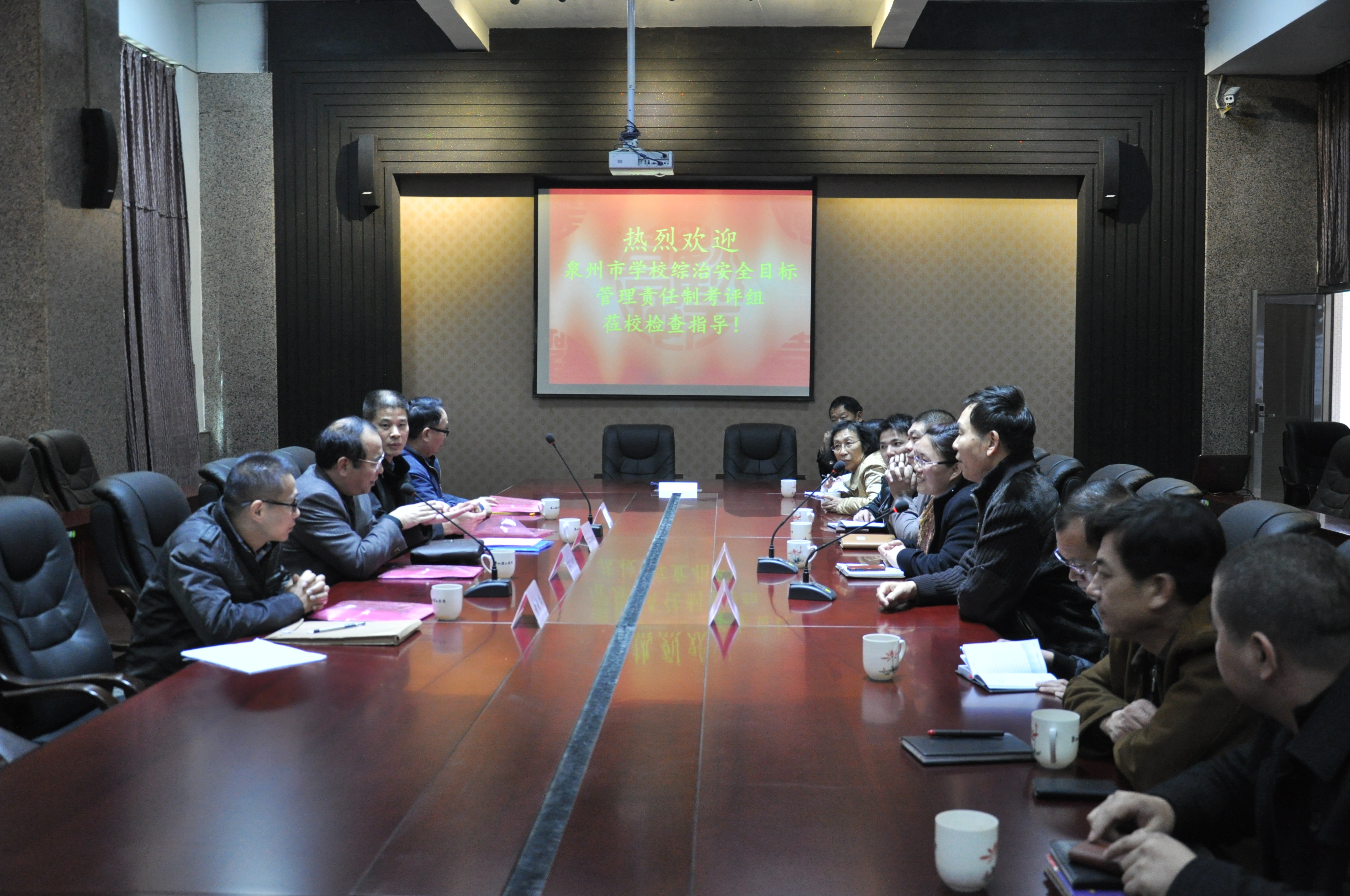 我校领导向考评组做校综治工作汇报 1月6日,泉州市学校综治安全目标管理责任制考评组莅临我校检查指导,我校副校长庄文瑞、党委副书记黄志梅等领导陪同,庄副校长作2013年学...