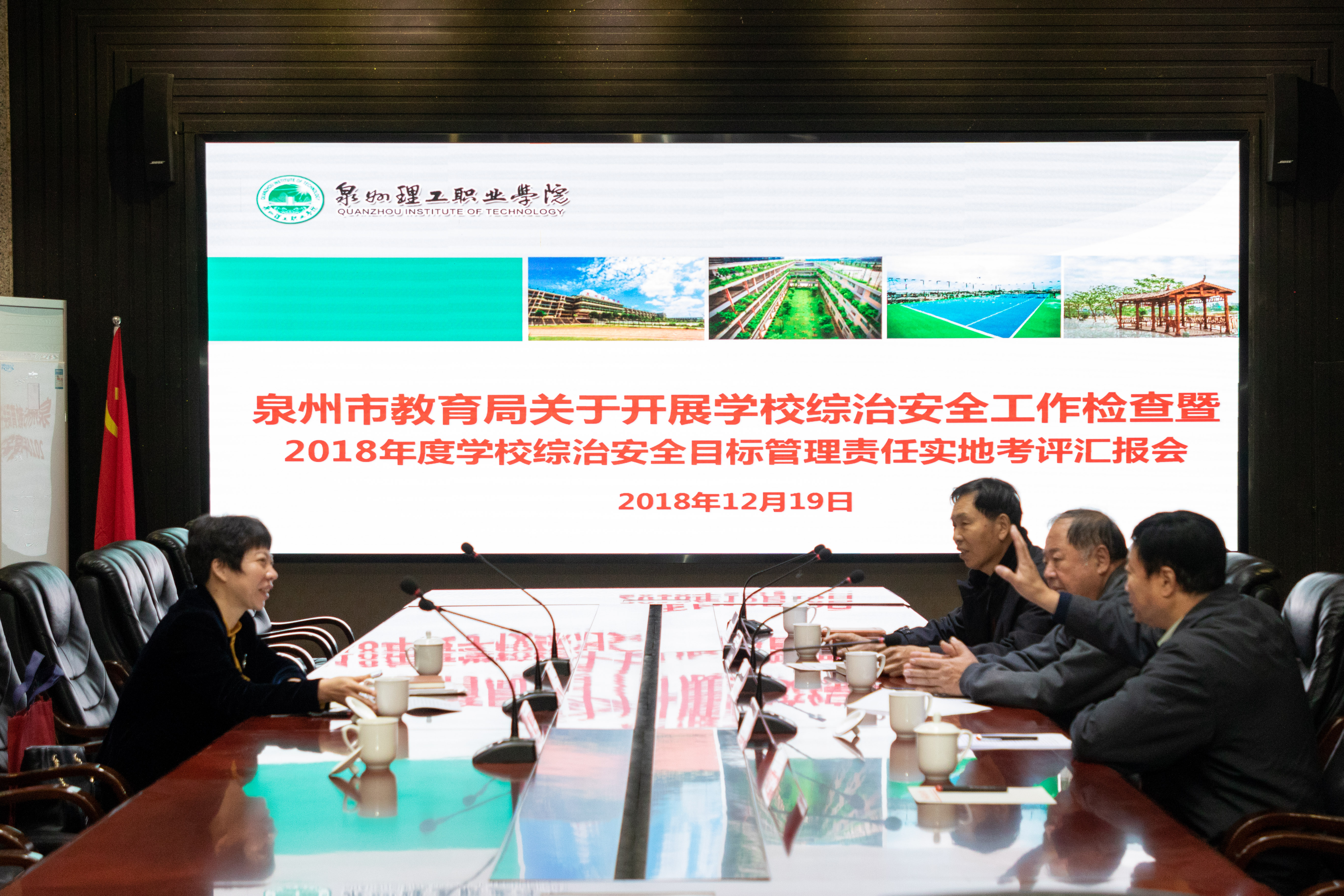 12月19日上午,泉州市教育局陈军宣副局长一行莅临我校进行2018年度综治安全检查。工作组分为两组实地察看学校大门、教学楼、食堂、宿舍等场所,同时听取学校综治安全工作汇报。校长臧树良、党委书记林其天、副校长庄...