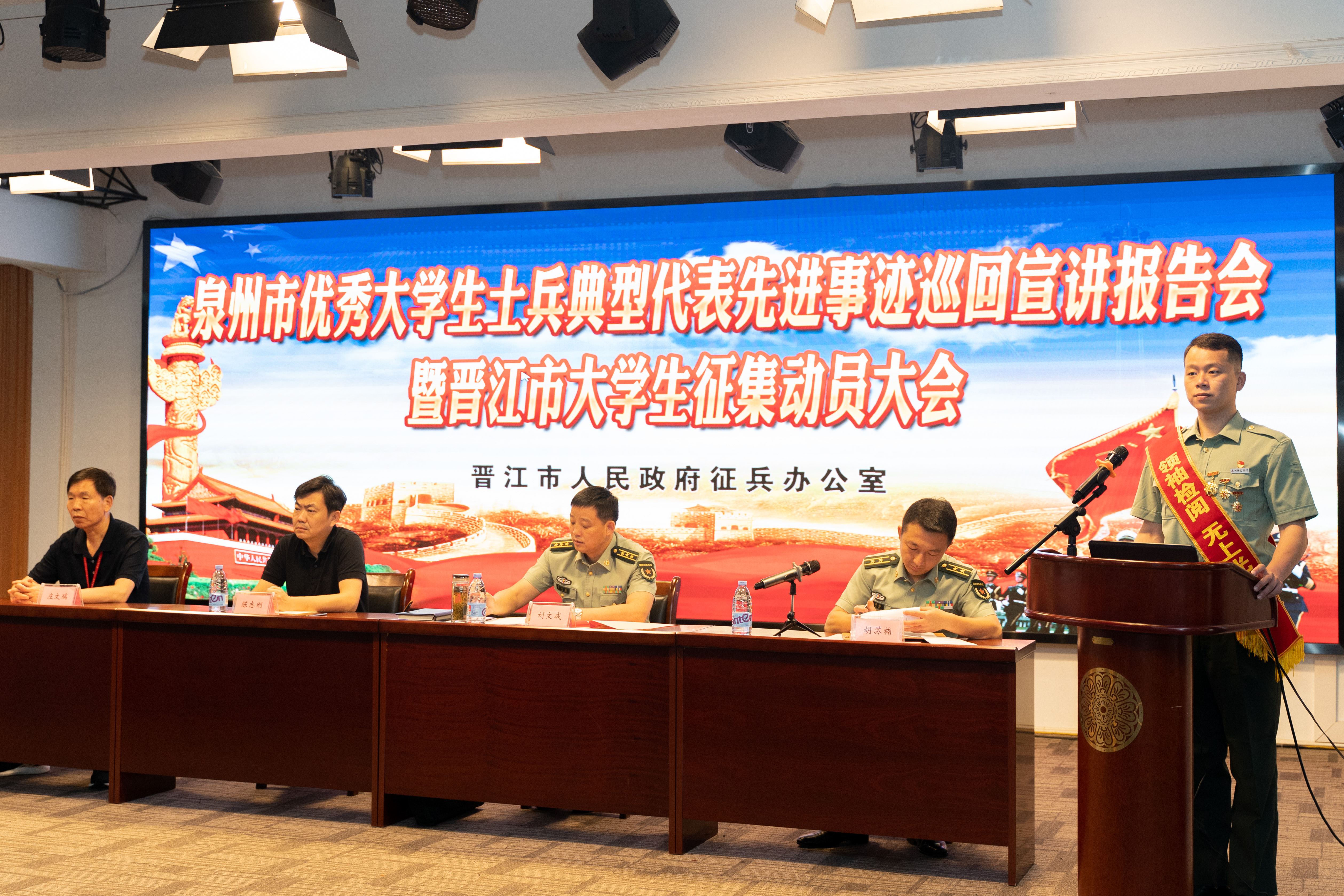 5月22日上午9:00,泉州市优秀大学生士兵典型代表先进事迹巡回宣讲报告会暨晋江市大学生征集动员大会在我校633报告厅举行。晋江市委常委、人民武装部政委刘文成、晋江市人民武装部副部长胡苏楠、泉州军分区动员处参谋...