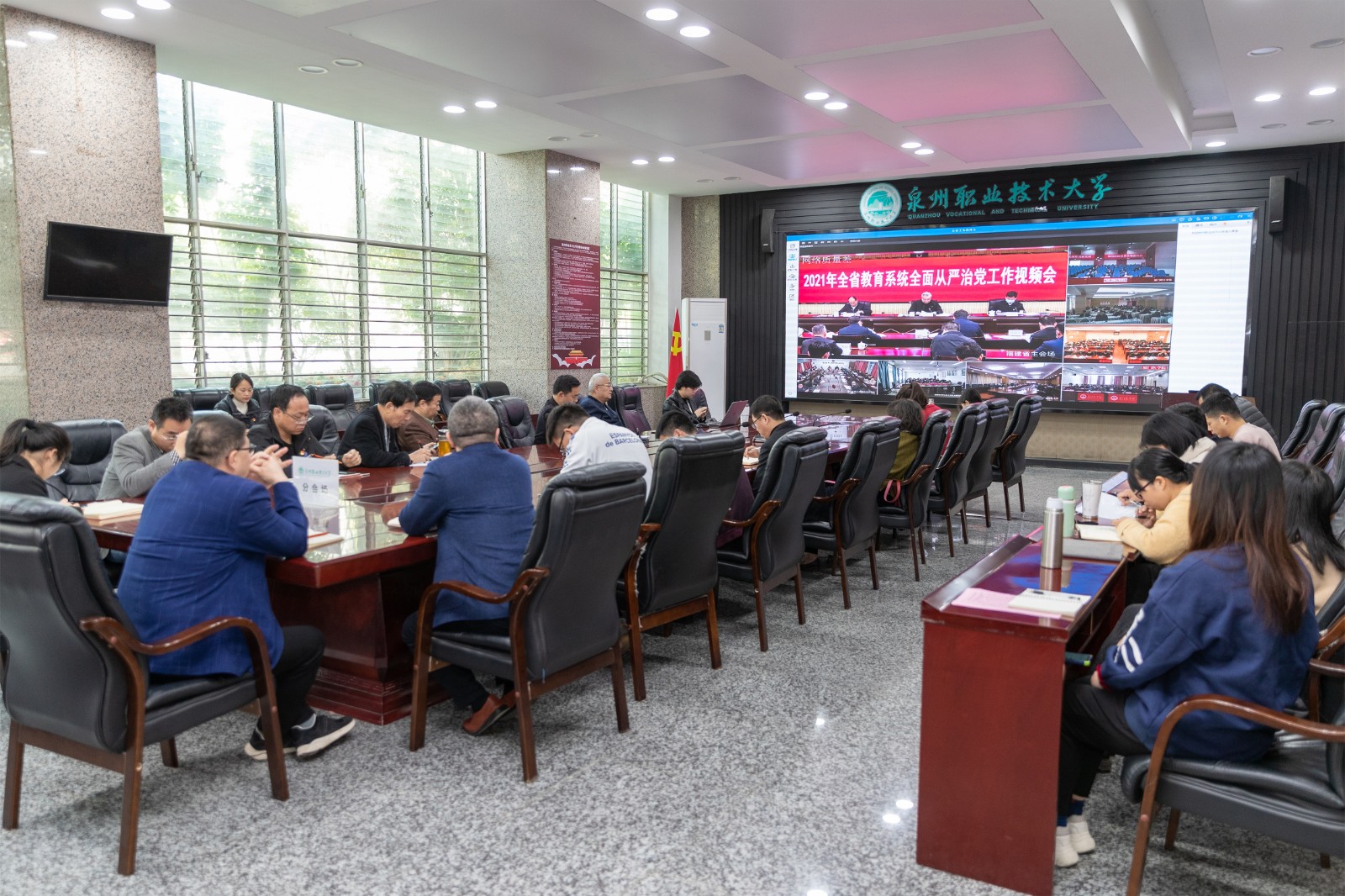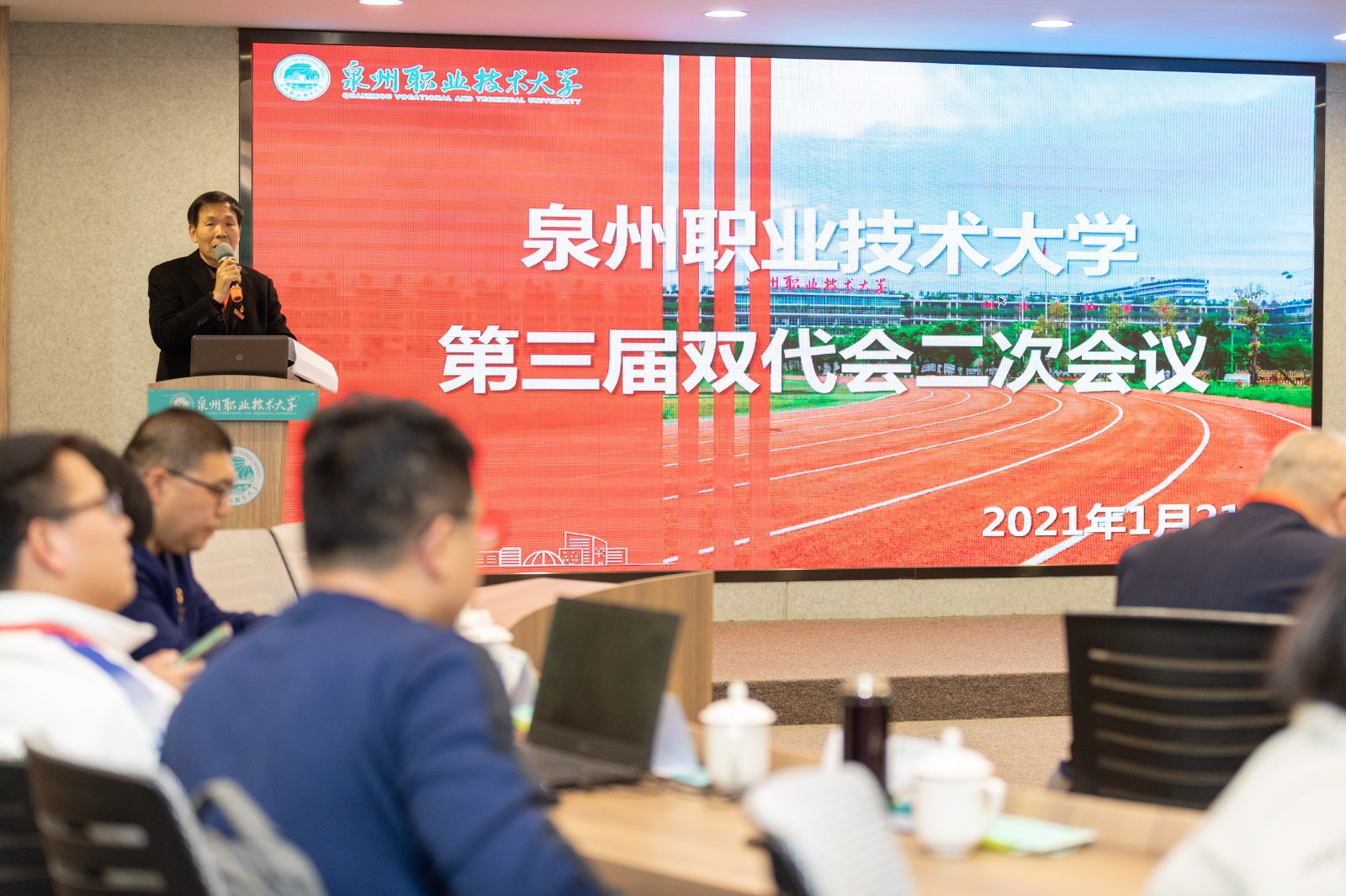 2020年是跌宕起伏的一年,也是全体泉大人携手闯关成功的一年。 1月21日上午,泉州职业技术大学2021年年会在A301国际报告厅召开,响应疫情防控要求,全体教职工以线下+线上形式参会。年会由校务顾问林其天主持。 ...