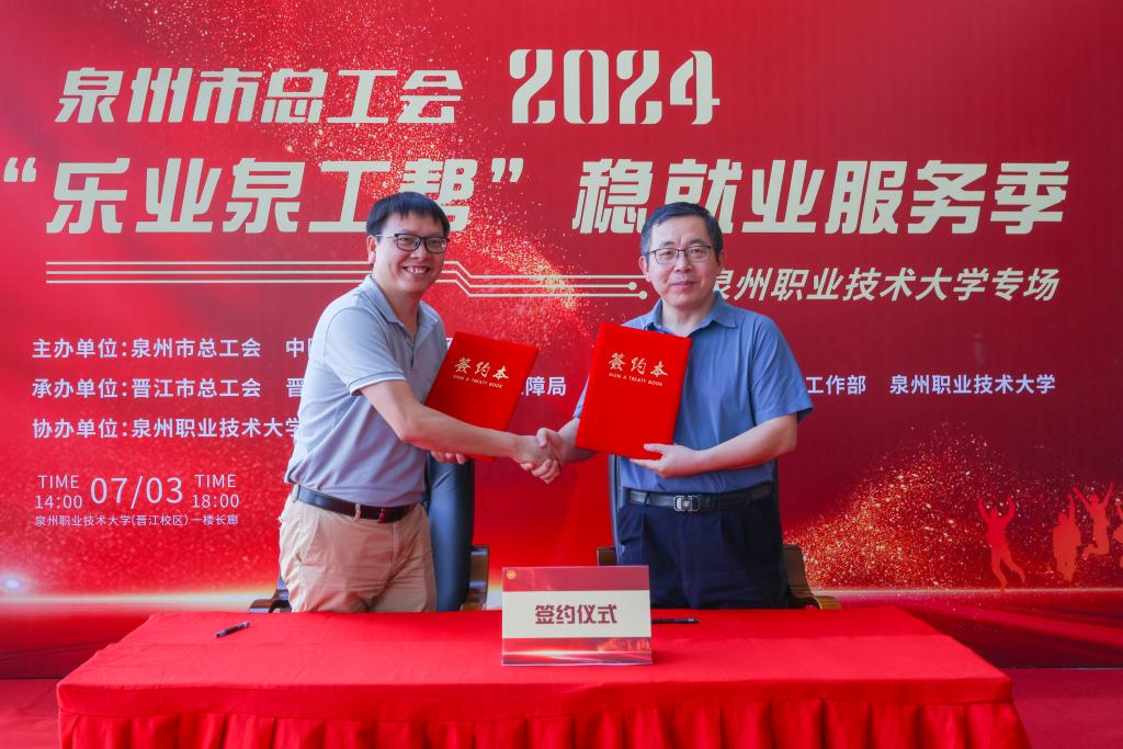 7月3日,2024年“乐业泉工帮”稳就业服务季——泉州职业技术大学专场招聘会在我校举办,本次招聘会由泉州市总工会和中国海峡人才市场共同主办,晋江市总工会、晋江市人力资源和社会保障局、中国海峡人才市场泉州工作部、泉州职业技术大学承办,泉州职业技术大学就业指导中心协办。出席活动的有泉州市总工会党组书记、常务副主席韩卫华,泉州市总工会党组成员、副主席危金海,泉州市总工会权益部部长周必循,泉州市台企工委主席...