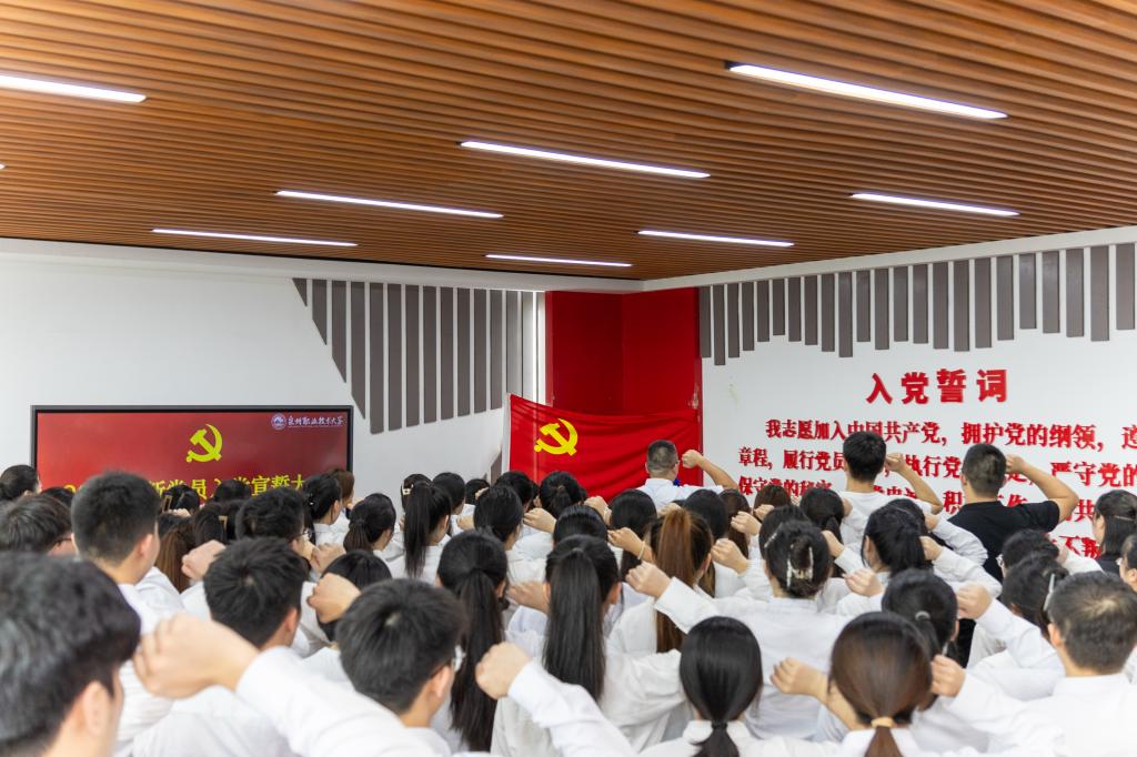 为庆祝中国共产党成立103周年,进一步加强新党员理想信念教育,7月1日下午,我校党委在党建馆举行新党员入党宣誓仪式。学校党委组织部常务副部长黄镇红,各书院党总支、党支部书记以及83名新发展的师生党员参加了宣誓仪式。宣誓仪式在庄严的《国际歌》中拉开帷幕。党委组织部教师伍丹萍宣读参加仪式的预备党员名单。随后,在黄镇红的带领下,全体党员们郑重举起右拳,面向党旗,庄严宣誓:“我志愿加入中国共产党,拥护党的纲领...