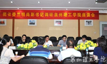 团省委兰明尚副书记听取汇报 兰副书记与学生亲切交谈 6 月16日 上午,团省委兰明尚副书记在泉州团市委黄天凯副书记的陪同下调研指导泉州理工学院团学工作,党委书记吴金营、校长苏志明代表学校对兰副书...