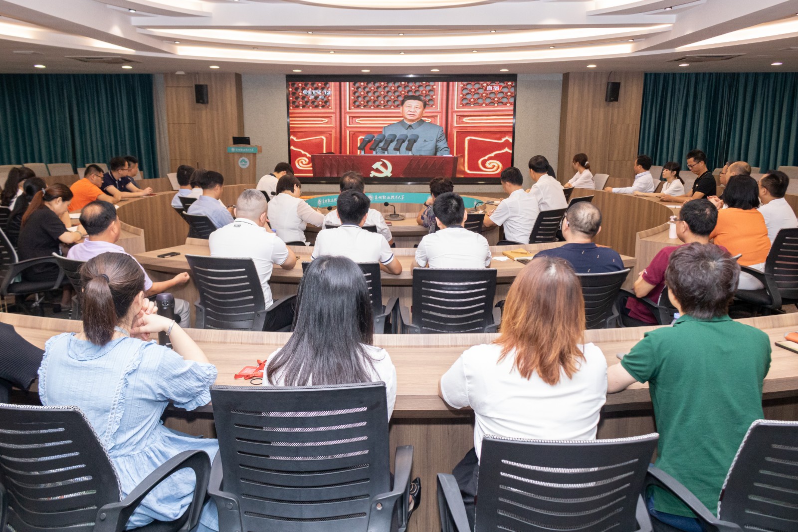上午,学校党政领导、中层以上党员干部、师生代表在A301会议室集体收看了庆祝中国共产党成立100周年大会;各基层党组织、广大师生以主题党日活动、主题班会、个人观看等形式,通过学习强国、央视网、新华网等平台共同收看了直播盛况。