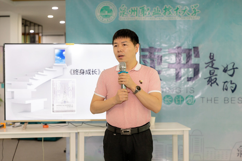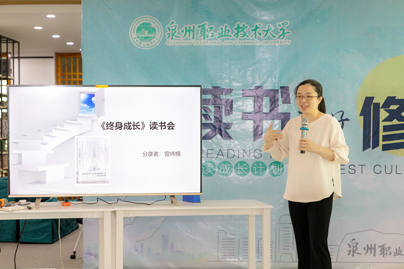 随后,由泉州樊登书店合伙人曾炜楠老师就《终身成长》一书,用“终身成长”的思维经营家庭和事业的角度,结合个人成长经历分享她的读书经验和体会。曾老师从书中“固定型思维”和“成长型思维”两种思维来阐述两者对于个人的事业和家庭影响,并提出在通往“成长型思维”的道路,需要学会接受、观察、命名、教育等途径,最后用书中“人们常常认为‘天赋’就是能力本身。然而,浇灌这些天赋的,是不断的、无休止的好奇心。”这句话作为结束语,与大家共勉。