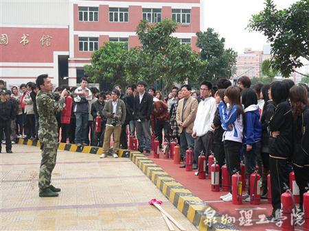 4月2日上午11时,随着三长警报的敲响,我校拉开了防震防火应急演练的序幕。此次应急演练活动由保卫科、学工处和团委主办,泉州市消防支队丰泽大队提供具体指导和帮助。校长苏志明、副校长庄文瑞、党委副书记苏白茹,党政办、学工处、保卫科、团委、后勤处等单位负责人及相关人员,各系主任及各年级辅导员,学校保安及校卫队队员,共三千多人参加和观摩了应急演练活动。