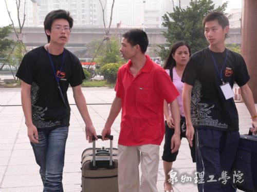在我校办公大厅,迎新工作正繁忙而有序地进行着,这里设有新生接待处,家长休息室新生行李寄放处等多个服务点,并有各系各班级学生轮流值班接待新生。学生会成员和迎新生志愿者也尽职尽责,用热情周到的服务、细致耐心的引导、亲切温馨的笑容、温暖贴心的话语迎接新生的到来。在泉州市各个车站的校车停靠点,我校学生穿着印有“泉州理工学院”的T恤,高举着校牌,迎接08级新生,接待的同学热情地接过新生的行李,向他们介绍学院情况,并将他们带到学校接待处办理入学手续,安排好各方面事宜。