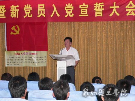 大会在激昂雄壮的国际歌中拉开帷幕,85名新党员面对鲜红的党旗进行了庄严宣誓。新党员教师代表杨永华和学生代表吴燕红分别在会上作了发言,表达了为共产主义事业奋斗终身的信心和决心,并决心用党员的标准严格要求自己,在今后的工作岗位上做出应有的贡献;院长苏志明同志作为老党员代表向新党员表示了衷心的祝贺,并提出要求,希望他们不断加强理论修养、坚定理想信念,在今后的学习、工作和生活中起到表率作用;院党委书记吴金营同志在讲话中强调,作为一名新党员,不仅要从组织上入党,更重要的是要从思想上、行动上入党,希望到会的党员同志们要牢记入党誓言,认真履行党员义务,在今后的工作生活中不辜负党的期望,无愧于共产党员的称号,为祖国建设做出自己的贡献。