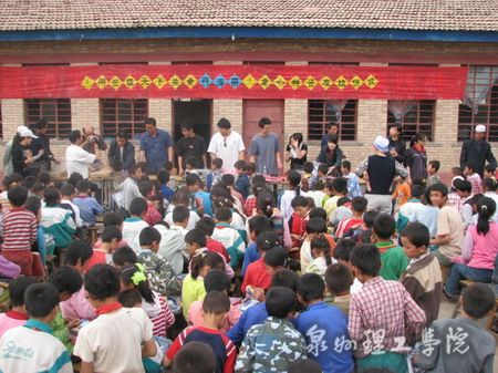 六一前夕,泉州理工学院从厦大研究生支教团的宣传资料中,了解到宁夏西海固贫困地区儿童生活、学习资料匮乏的情况后,在全校师生中广泛发起“同在蓝天下,关爱西海固”青年志愿者献爱心活动,师生们踊跃捐款捐物,短短几天时间里为宁夏海原黄坪希望小学426名小学生送去现金5600元、衣服1223件、书包423个、文具盒404个、书籍2800册,总价值达2万余元,还援助学校建成“爱心图书室”,泉理工师生们用自己滚烫的爱心使黄坪希望小学的孩子们度过了一个快乐的儿童节。