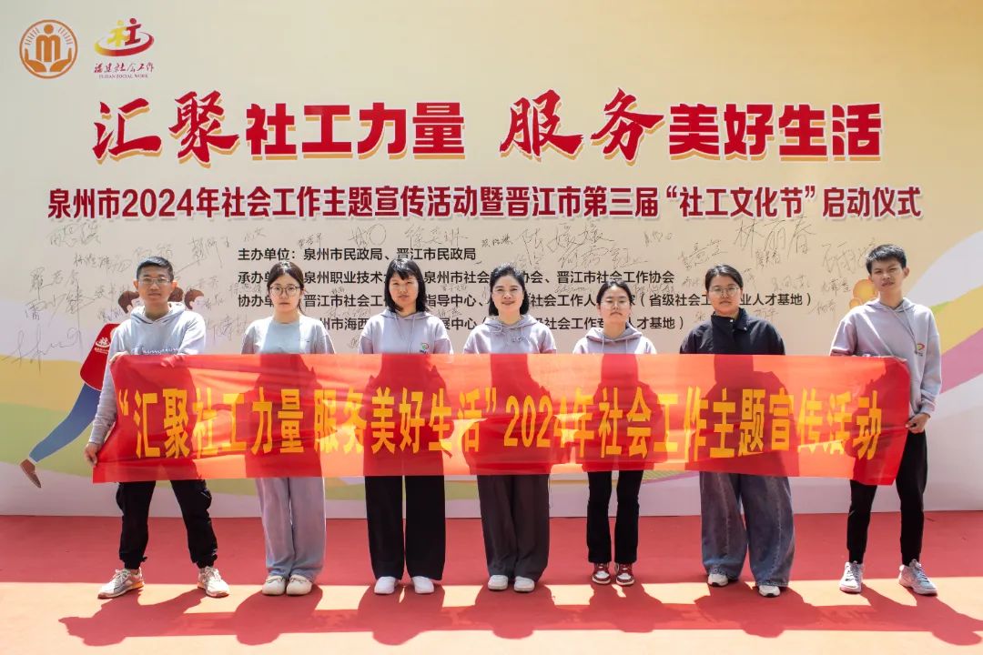 3月26日,泉州市民政局联合晋江市民政局在泉州职业技术大学,隆重举行“汇聚社工力量 服务美好生活”的泉州市2024年社会工作主题宣传活动暨晋江市第三届“社工文化节”启动仪式。