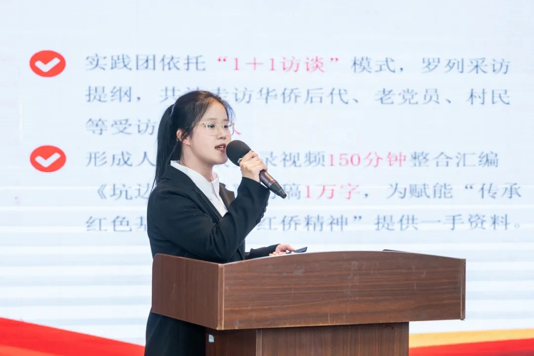 12支校级优秀实践团队依次上台,结合各自专业特色与实践经历分享了丰富多彩的社会实践成果,展示了泉大师生的时代担当与蓬勃朝气。