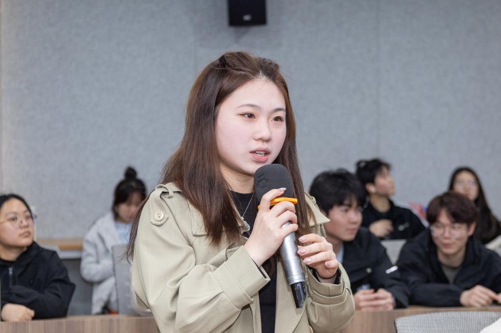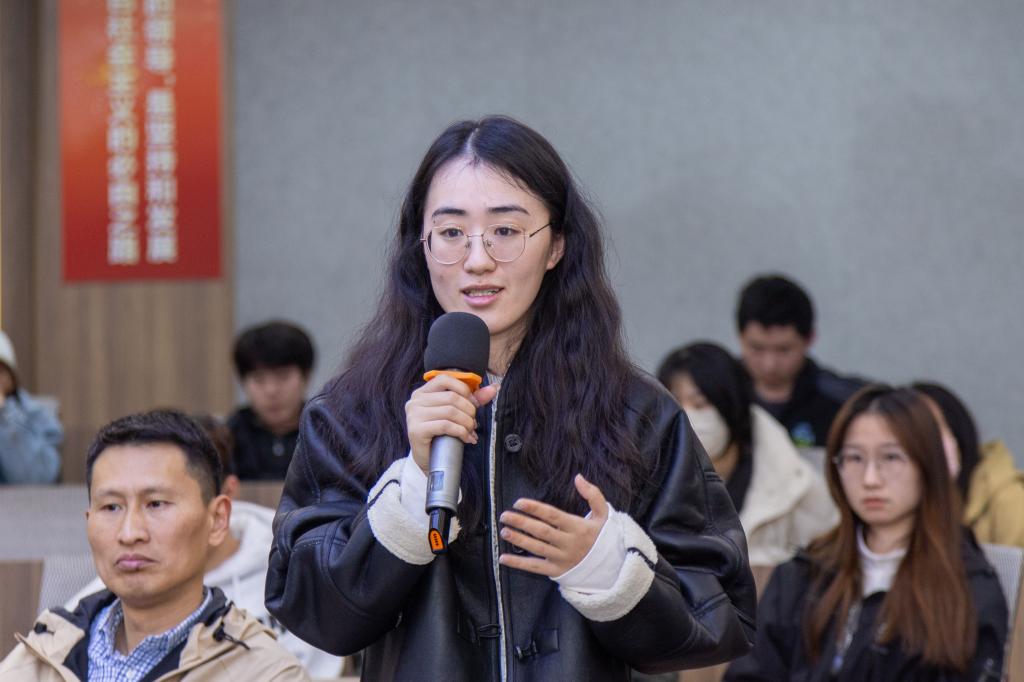 在随后的互动交流环节中,同学们积极提问,与嘉宾们进行了深入的交流。马振军解答了同学们的问题,并提供了宝贵的建议和指导。刘静鼓励同学们前往三创园创业,并强调了三创园为青年创业者提供的全方位扶持和服务。