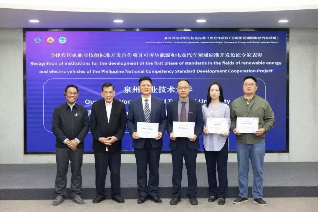 3月24日,菲律宾国家职业技能标准开发合作项目“可再生能源和电动汽车领域”成果表彰暨合作签约仪式,在泉州职业技术大学举行。活动由菲律宾职业技术教育与技能发展署(TESDA)、中菲丝路学院基金会共同主办,泉州职业技术大学承办。