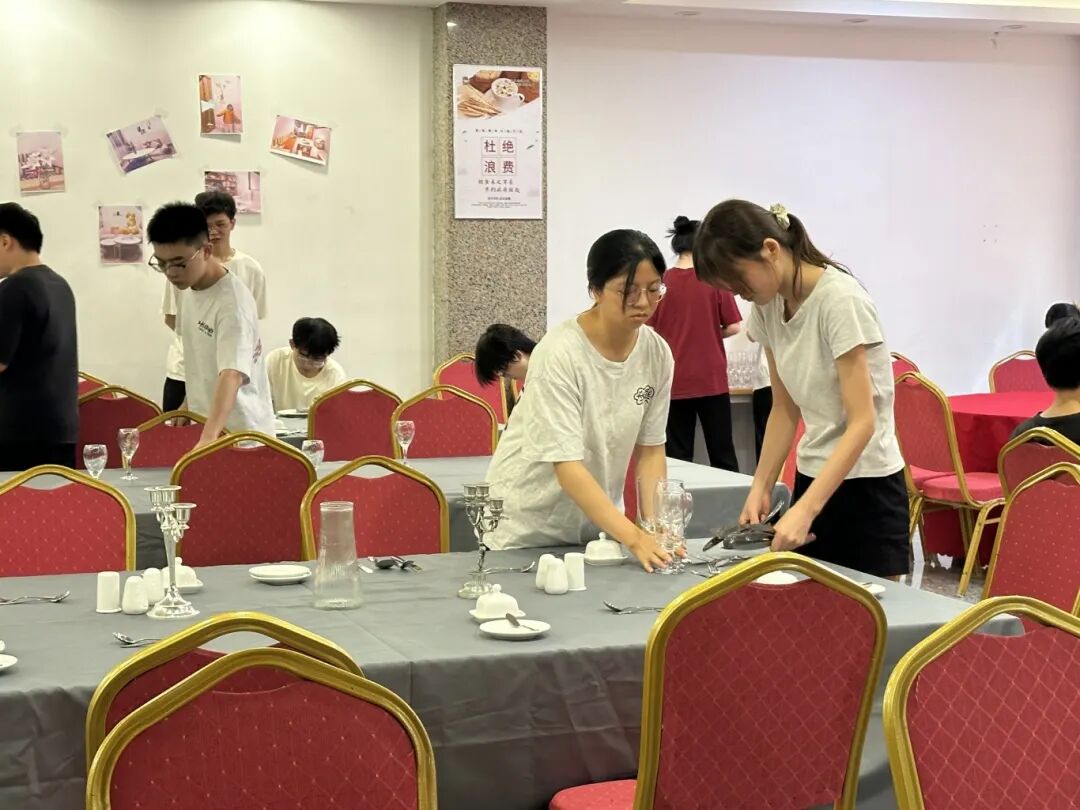 商学院开展国家职业资格餐厅服务员综合项目,对标国家餐厅服务员(高级)资格考核,聚焦高端餐饮场景,通过结构化、实战化培训,强化中西餐摆台、服务全流程、礼仪及应急处理等实操技能,助力学生通过认证,提升就业与职业发展竞争力。