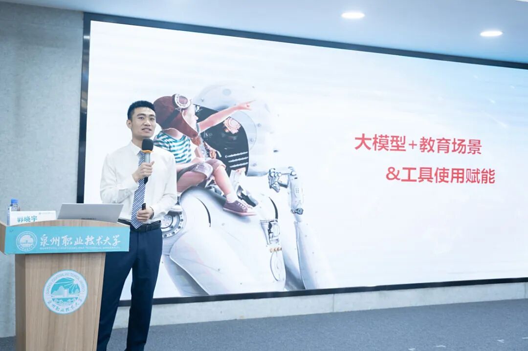 学院专任教师张国永、杜振亮等带队实践“DeepSeek+RAG开源三件套构建本地AI知识库”,华为专家驻场开展“大模型+教育场景”深度实训,提升教师AI技术应用能力,为未来教师数智化教学提供支撑。