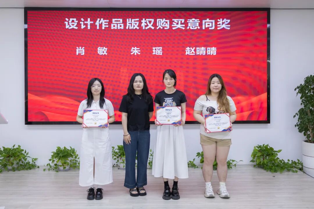 慕丽(福建)实业有限公司人事部部长肖晓燕称赞学生作品展现出的创新精神、实践能力与专业热爱,认为这些作品在技术应用、设计思维、时尚敏感度上表现突出,体现了跨学科融合等特质,是学校培养学生综合素质的最佳体现。随后她为肖敏、朱瑶、赵晴晴同学颁发设计作品版权购买意向奖,鼓励她们再创佳绩,并表示愿为有潜力的项目提供技术指导、资源对接或实习机会,助力创意走向市场,欢迎同学们关注其校企合作计划与校园招聘通道。