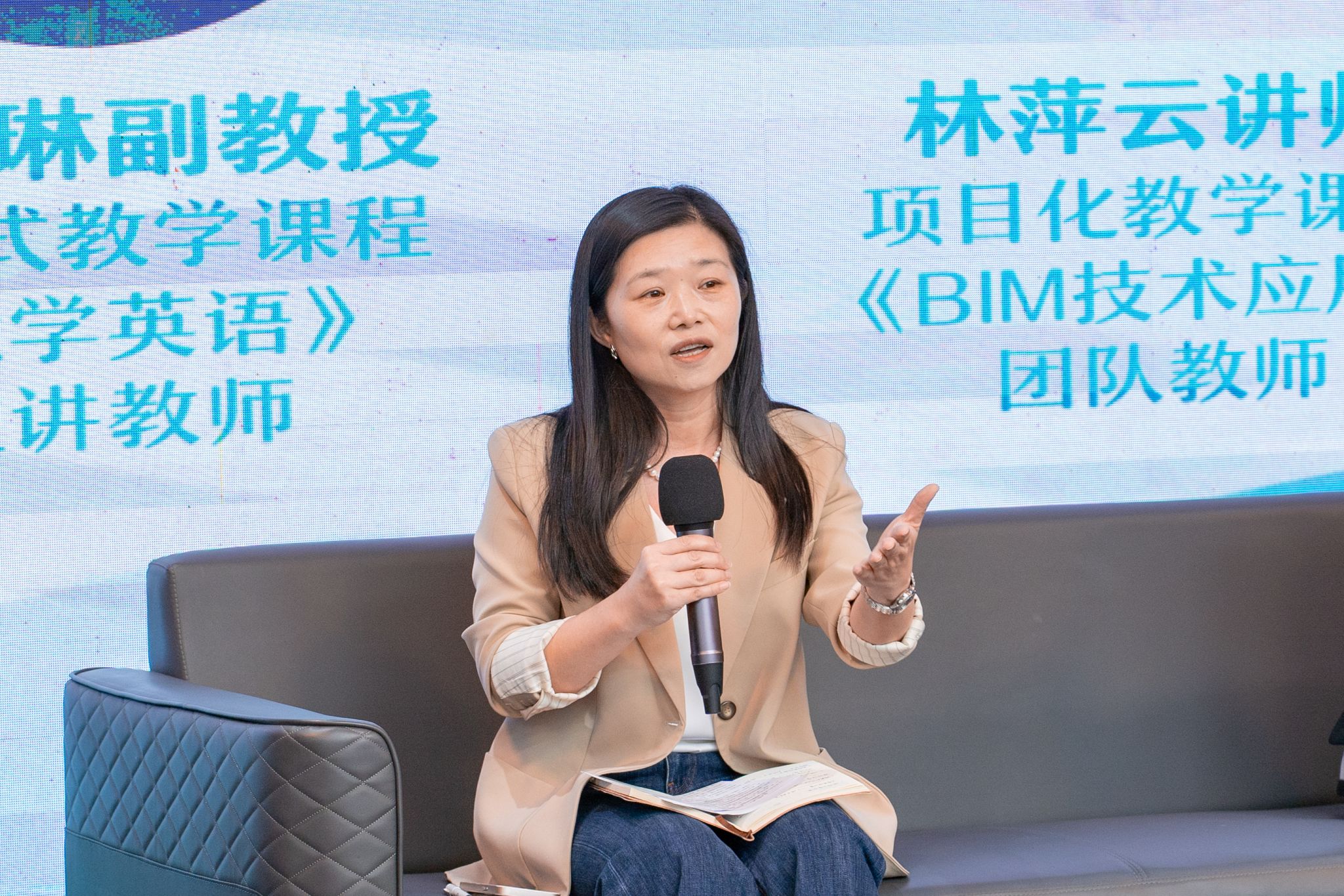 在随后的圆桌对话环节,3位一线教师结合各自课程分享了应用心得。刘颐琳副教授指出,“3C3S”教学法为《大学英语》实现通专融合提供了明确路径,并在与艺术专业的跨学科融合中成效显著;林萍云讲师认为,其“三段式”教学设计有效促进了《BIM技术应用》课程知识的系统整合,推动课堂形态向“以学生为中心、以问题为导向”转变;于哲讲师则表示,该教学法为《直播运营》等源于真实项目的课程提供了理论支撑与系统化构建方法。