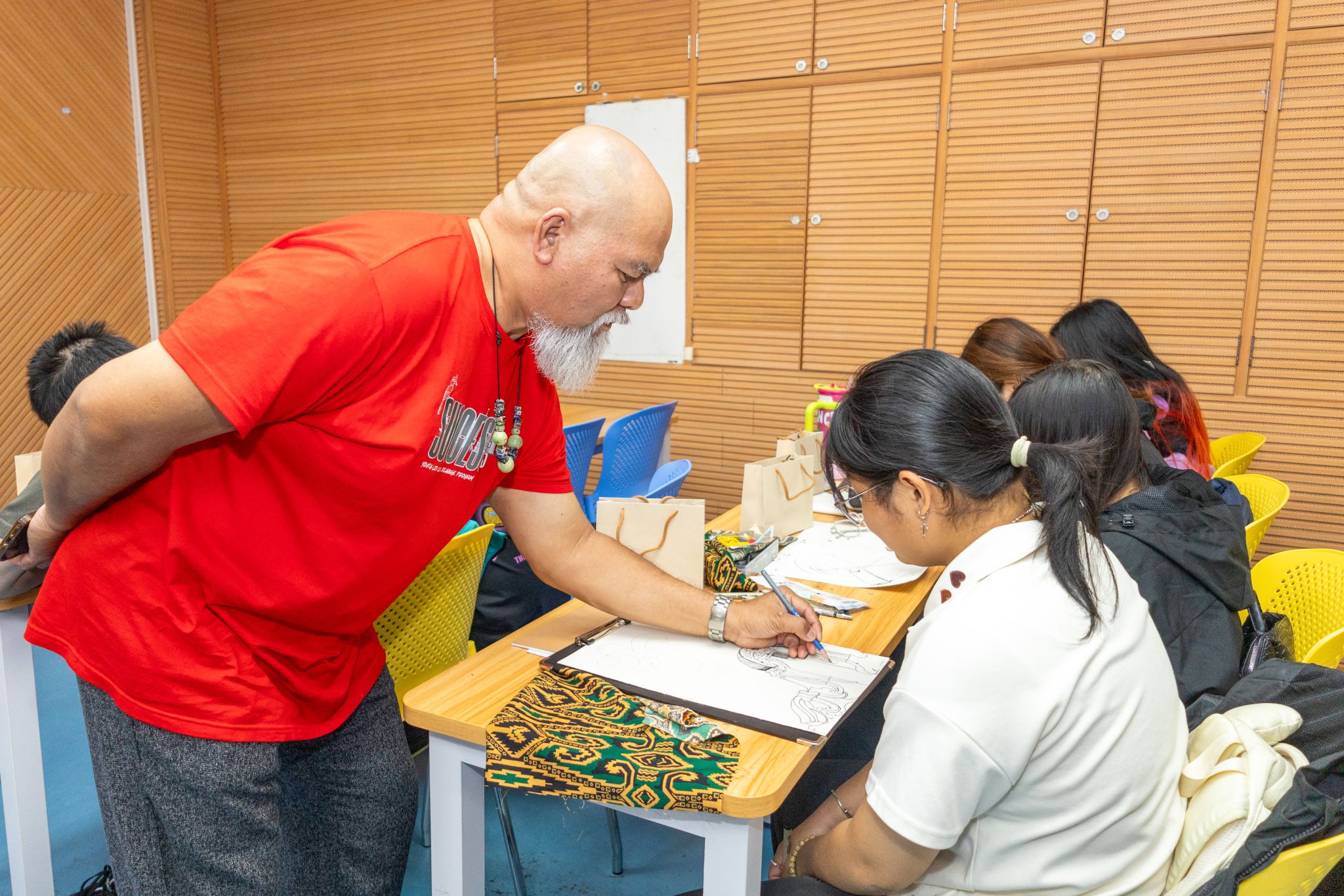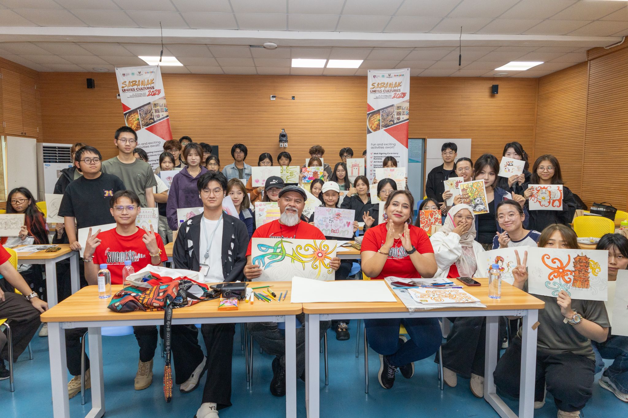 共创课堂之外,马来西亚朱莉安娜·埃梅赫·瓦希德博士还在艺术传媒学院举办素描课程,讲解马来西亚自然元素如何转化为独特艺术纹样,引导学生将中国元素融入设计中。学生们在创作实践中大胆融合中马艺术符号,感悟不同文化美学在碰撞中产生的艺术火花。