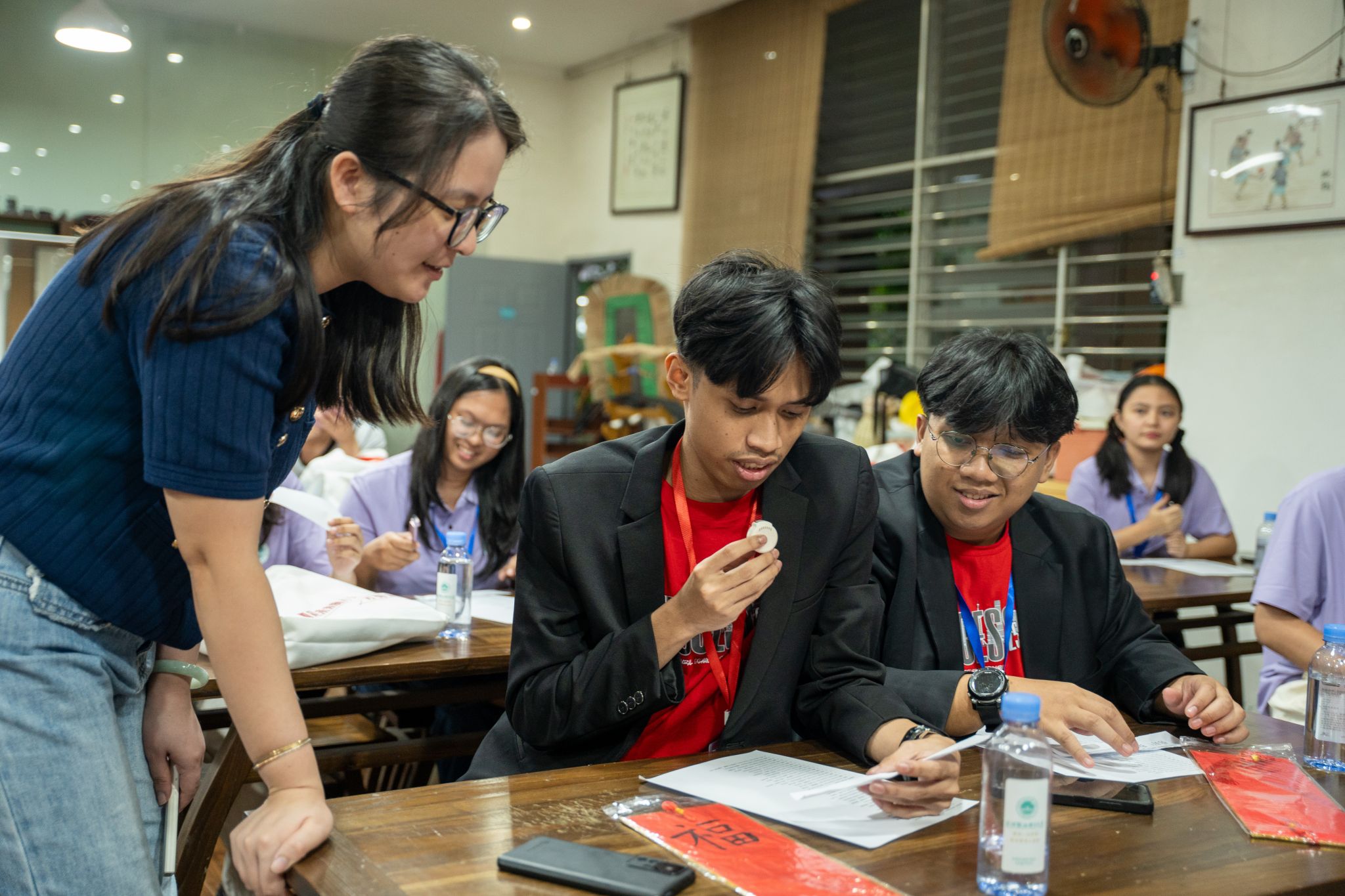 与此同时,营员们还带来3场“世界不大,外国不远”分享活动。马来西亚的阿曼达·布里奇特·理查德同学以“趣味英语”为题介绍当地语言文化;菲律宾的汉娜·卡特里娜·玛丽丝·马丁内斯和克里斯汀·乔伊斯·加里内罗带领同学们“探索达沃”;泰国的托蒙·林哈特拉库老师分享泰国语言文化与美食。这些活动,生动地拓展同学们的国际视野。