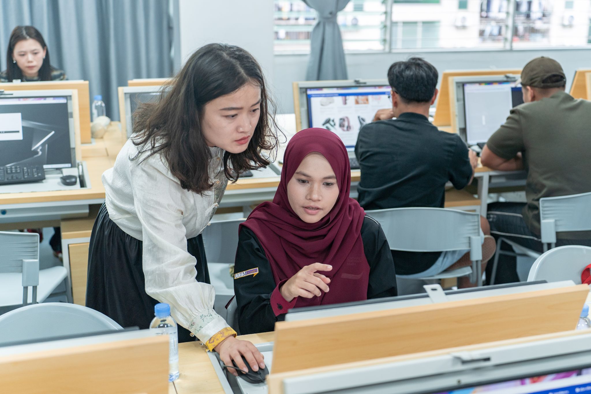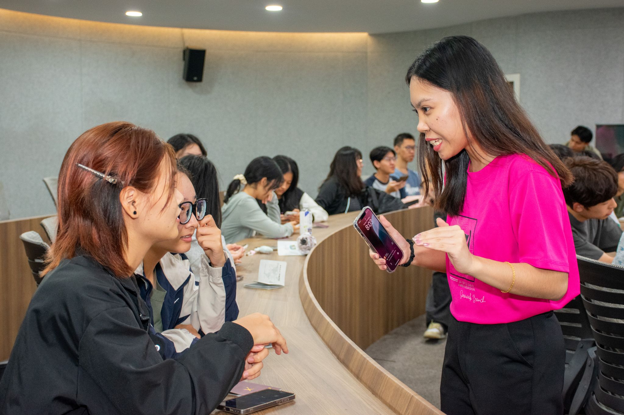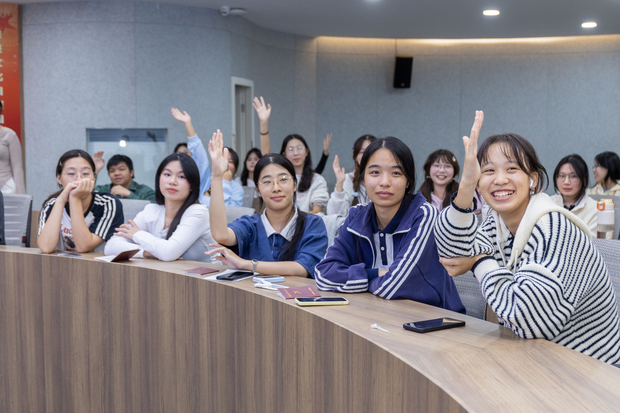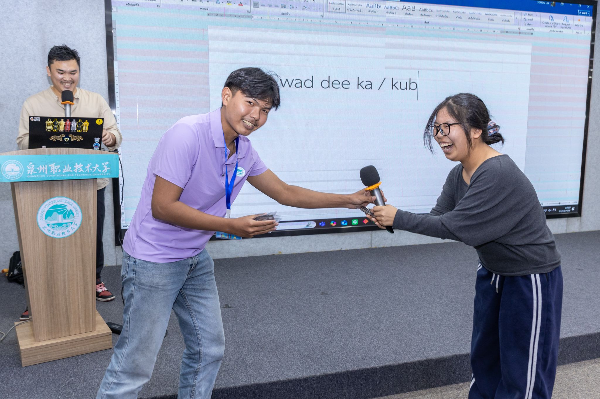 在英语课堂上,马来西亚玛拉工艺大学的教师黎思湄、罗哈思琳·罗斯莉也受到学生欢迎。泉大国际语言中心主任刘颐琳副教授对共创课堂给予高度评价,“外教的讲解清晰易懂,善用生动案例、结合生活场景和肢体语言将抽象概念具体化。”2025级人工智能工程技术1班的陈恩慈则一脸兴奋地说,“外教教我们唱马来西亚歌曲,还给大家带来精美的小礼物,营造出很好的互动氛围,让每位同学都积极举手,热情地参与到课堂中。”