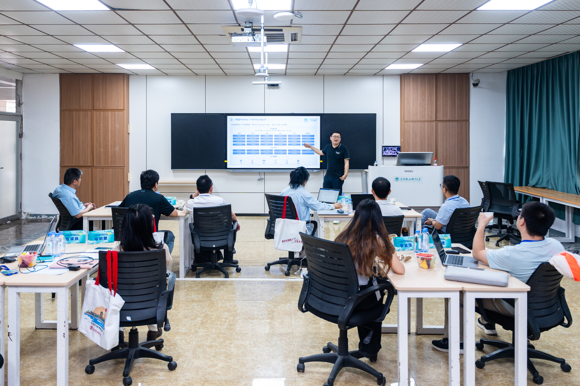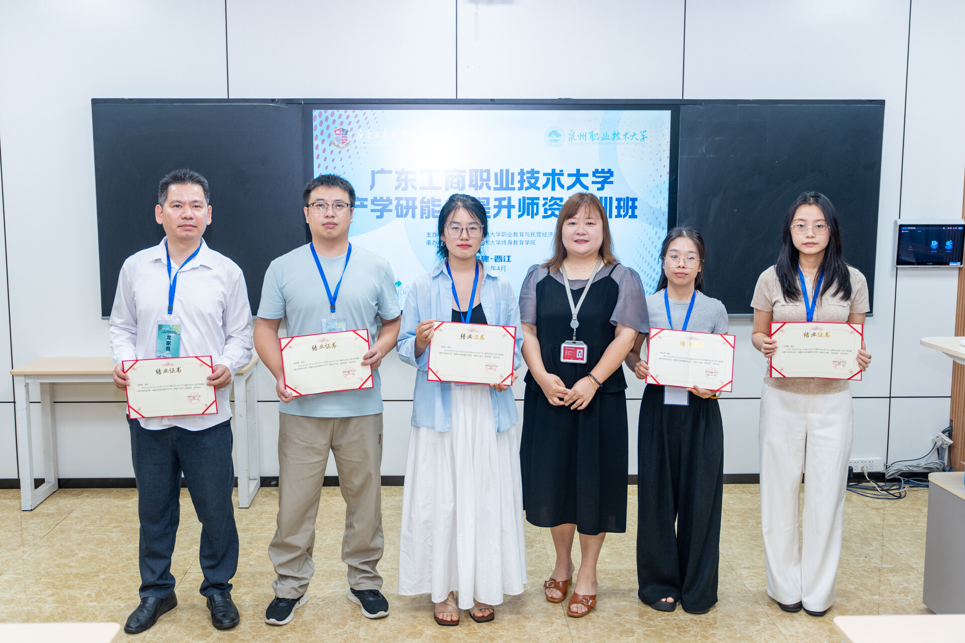 4月18日至20日,广东工商职业技术大学大旺校区管委会副主任郑志峰带领智能制造与汽车工程学院院长魏益群、人工智能与大数据学院副院长朱培培等10名骨干教师及管理人员,到泉州职业技术大学参加产学研能力提升师资培训班。培训由我校职业教育与民营经济发展研究中心主办、终身教育学院承办,以专题讲座、现场教学、实地考察、研讨交流相结合的方式进行。