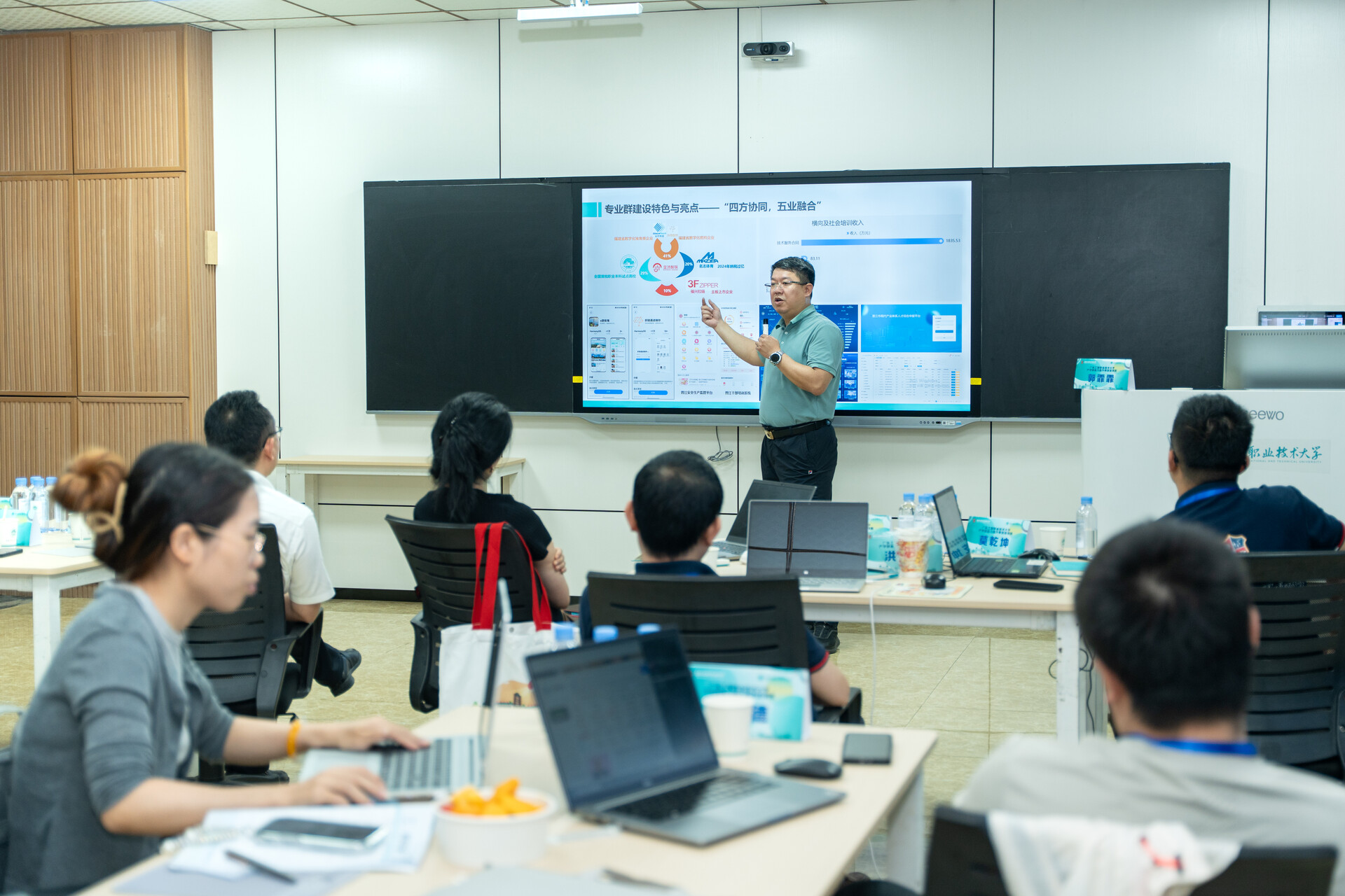 培训班上,我校董事长助理、党委宣传部/品牌传播部部长杨颖聪以《产教城融合的职业本科办学模式探索与实践》为题,分享学校深化产教城融合,全速推进基于“产业伙伴型大学”和“市域产教联合体”双轮驱动的职业本科办学模式,推动学校高质量发展。