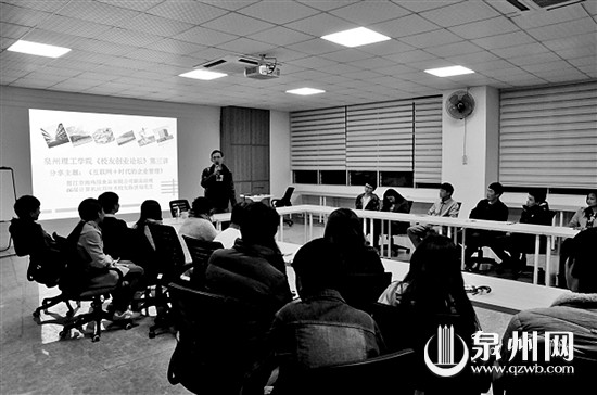 去年12月30日,泉州理工学院举行《校友创业论坛》第三讲,邀请06届计算机应用专业、晋江市海珠园视频有限公司副总经理陈世灿作为演讲嘉宾,与该校师生分享《互联网+时代的企业管理》。