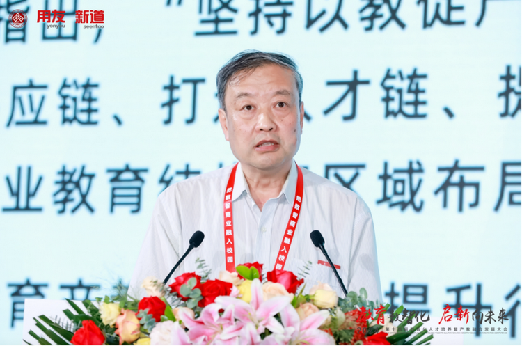 国家督学、国家教师教育咨询委员会委员孟庆国聚焦“产教融合再赋能再提升 推动现代职业教育高质量发展”发表演讲。他介绍,职业教育产教融合呈现新作为新局面,面对新时期新变化职业教育积极识变应变,主动适应经济结构调整和产业变革,紧盯产业链条、市场信号、技术前沿和民生需求,推进专业升级和数字化改造。孟庆国指出,职业教育产教融合要聚焦突出重点产业布局和行业发展赋能提升,充分体现国计民生两大方面;聚焦夯实职业院校发展基础赋能提升;聚焦调动地方政府和企业积极性赋能提升。他提出,职业教育产教融合亟需再落实再深化,更多企业要争取成为产教融合型企业,职业院校要努力提高职业教育对产业的贡献度,地方各级党委和政府要加大对职业教育的政策供给,财政支持,积极作为,推动职业教育的一体两翼落地。