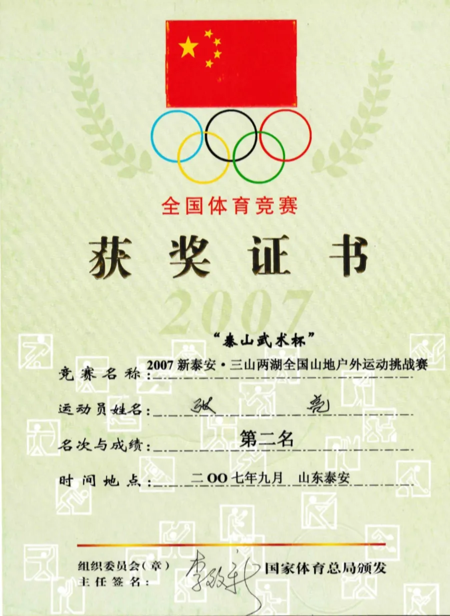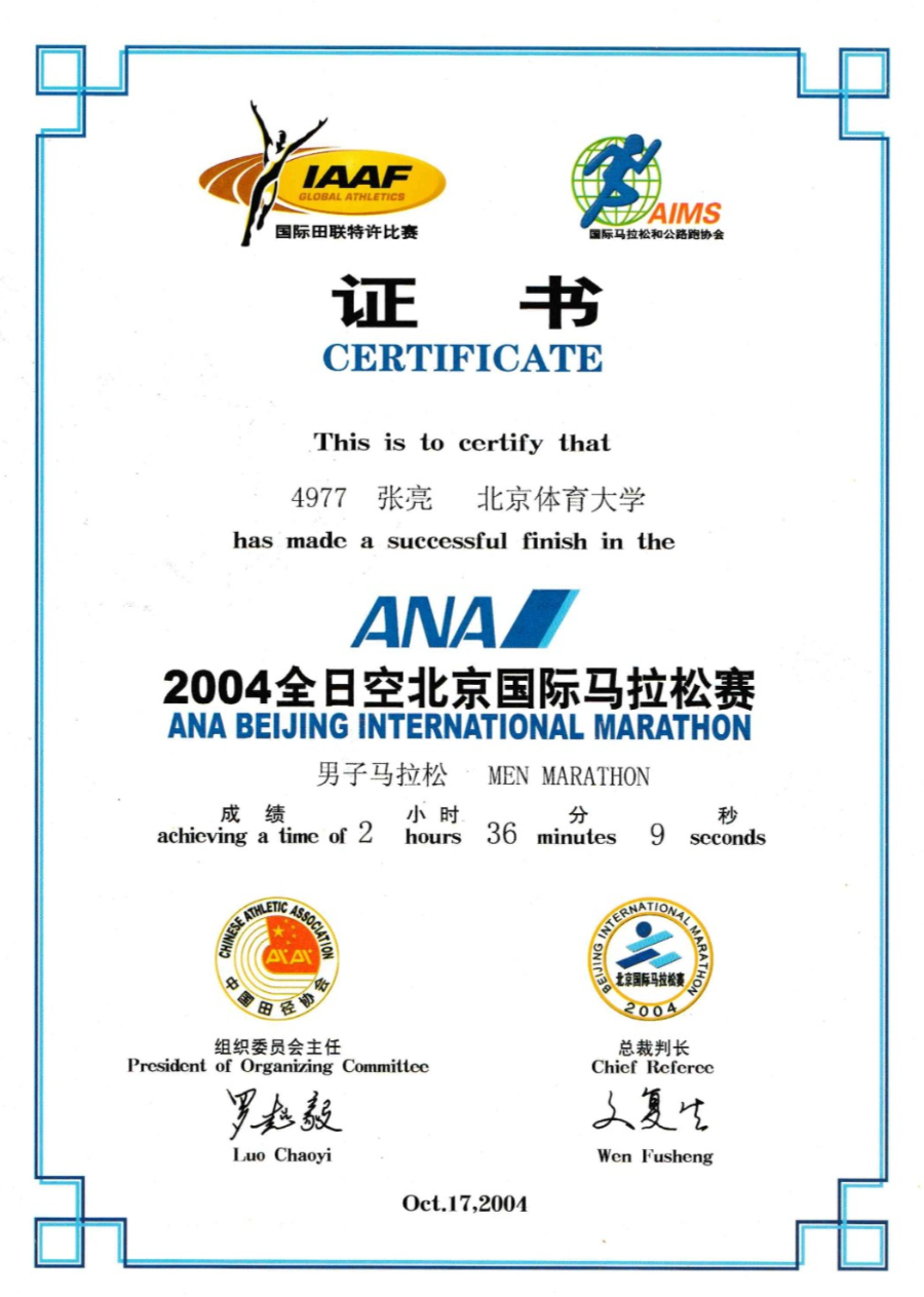张亮:我刚出道的时候就是练跑步的,由于当时教练的安排就改成竞走,其实当时我跑步已经很厉害了(笑)。2004年我是免试上了北京体育大学竞技体育学院优秀运动员班,这个班级是当时北体针对优秀运动员而开设的,里面都是各个项目的优秀运动员、全国冠军、奥运冠军,比如2004年雅典奥运会摔跤冠军王旭也在这个班级。由于竞走运动在大学体育中比较少开展,上大学后我就又开始较为专注地跑步。因为当时刚下队,体能又好,气氛也好,所以在北体四年里,除了平时上课,跑步锻炼从没断过,我还经常参加一些跑步活动,马拉松赛事、登山越野跑、全国山地户外运动、国际山地户外锦标赛,还有骑行等,在校还荣获过优秀三好学生、优秀学生干部、年度奖学金等。