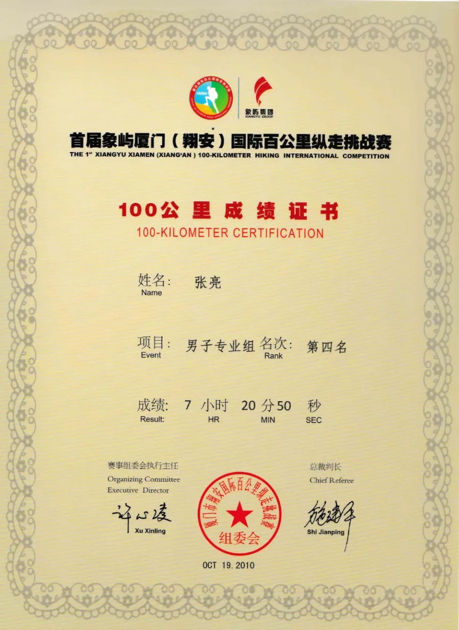 张亮:从2008年开始,我每年都有参加厦马,共14届了。此外,我还参加过金门马拉松、上海马拉松、北京马拉松、福州半马。最好成绩是2004年第一次参加北京马拉松比赛,2小时36分,排在北京高校组第二名。