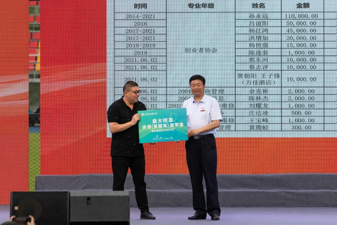 除了对校友会的活动资金大力支持外,叶天耀有合适的业务也常常会关照校友。作为创业成功的榜样,在学弟学妹们遇到事业瓶颈时,他还常常热情地给予支招、提供帮助。今年得知学校校友总会牵头成立“校友体育(早锻炼)奖学金”,他立即慷慨解囊,捐款一万元。