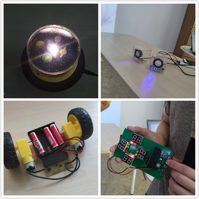 王志明老师的教学指导17级电子信息工程技术1班全体学生6月份完成了为期周的《电子电路设计与制作》实训。同学们根据各自的学习兴趣和方向自行组队,分成6个小组展开实训。集中实训的短短二周里,他们在掌握理论知识的基础上,自选课题、自买材料,学习并实践PCB绘图、元件焊接、制作电路板、整机调试,最终做出成品