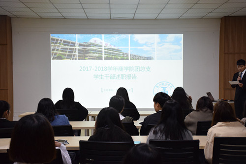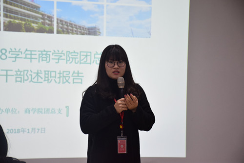 1月7日,商学院团总支在第二会议室组织召开2017-2018学年商学院学生干部述职报告会。