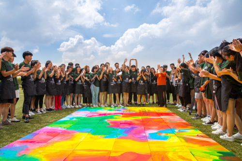 924日,今年新设立的络缇时尚学院举行了一场以“年轻 活力 色彩”为主题的百人绘画拼图。该活动负责人表示,“百人拼画”由108幅作品组成,学院所有学生都参与其中。通过这种方式将所有人汇聚,每人都在空白画板上留下浓重的一笔,希望学生能将画板中的色彩与生机无限延续,在时尚的道路上,一路前行。